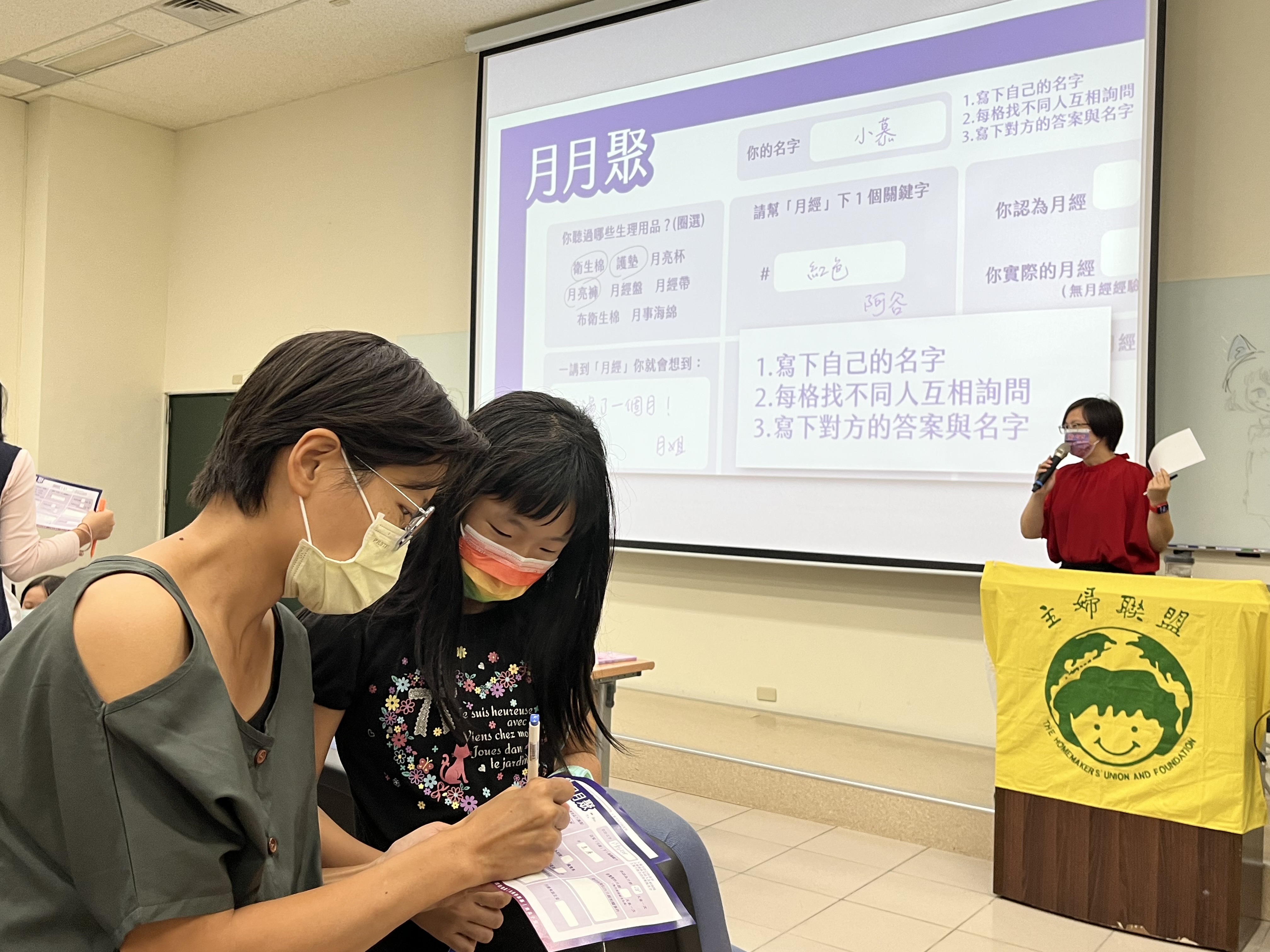 講座開始,現場的參與者先以月經9宮格互動小遊戲破冰,藉由這個互動除了喚起自己的月經記憶、大概針對現場參與者了解一下彼此對於月經的感受和印象,也交流了曾經聽聞關於月經的刻板印象。